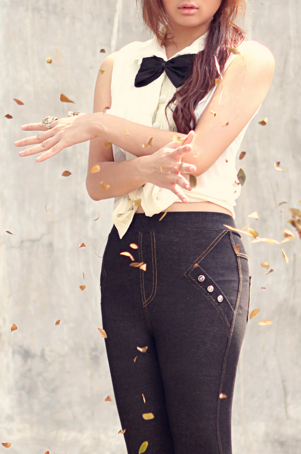 Anyway, I was wearing white sheer blouse from ChocoChips, and my sister high waisted jeggings. Oh, the bow tie is actually one of my dance props ;)