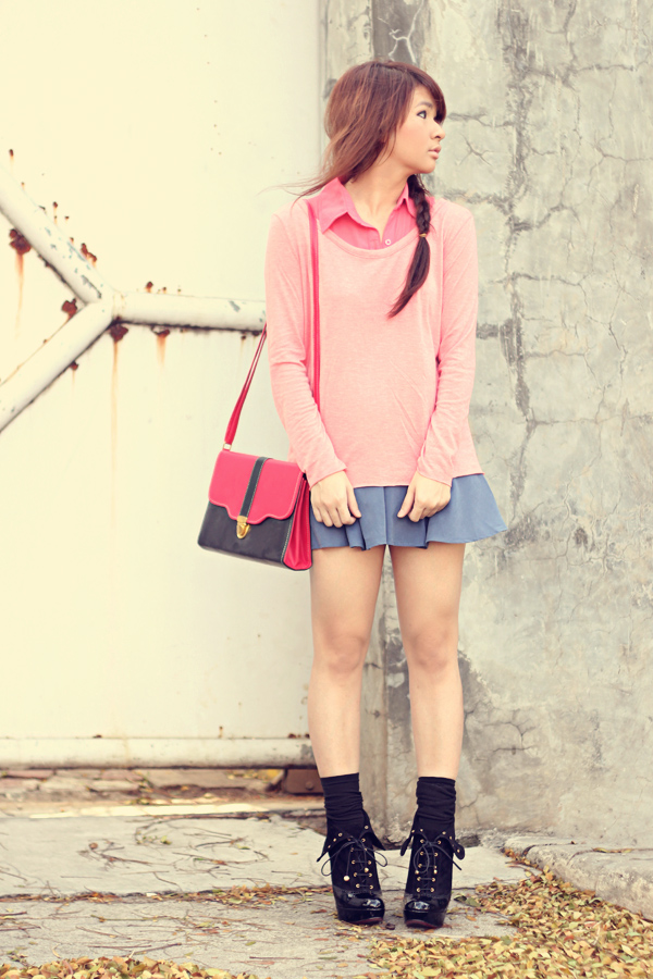 I’ve been watching too many Korean dramas lately thus suddenly I get inspired by this high school or collage thing. And once again, I made some colors experiments with it, funny? Hahaha now I feel like going back to school all over again.