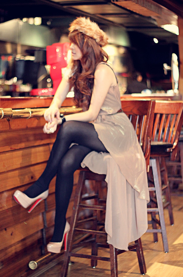 I was wearing mocha foil asymmetrical maxi dress from LOVE (check out their website for the current promotions ;), fur hat from H&M and bianca pumps from Christian Louboutin.